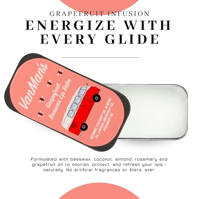 VanMan Beeswax Lip Balm Tin – Organic Beeswax with Coconut and Sweet Almond Oils, Lanolin, and Grapefruit Oil – Hydrating Moisturizer for Dry Lips – Grapefruit – 3 Tin Pack