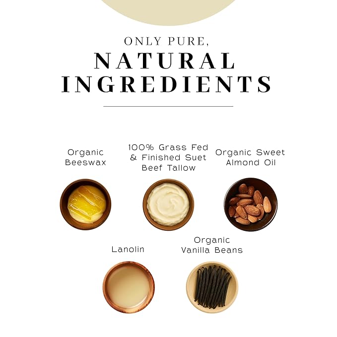 - ORGANIC INGREDIENTS, HIGH-GRADE QUALITY: Made only with organic beeswax, grass-fed and finished suet beef tallow, and natural oils. Each ingredient is selected for purity and quality creating a clean, effective tallow lip balm that supports lip care.
