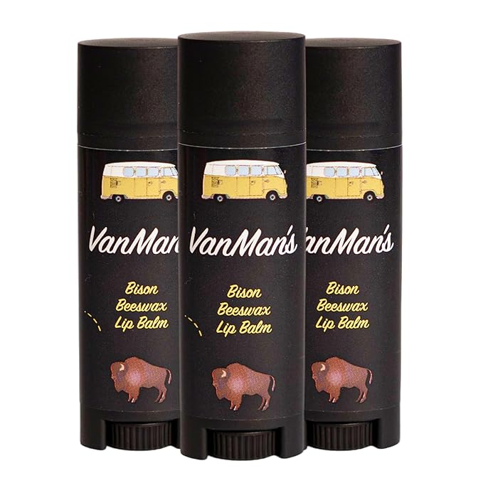 VanMan Beeswax Lip Balm Tube – Organic Bison Tallow Balm with Grass-Fed and Finished Tallow, Sweet Almond Oil, Lanolin, and Beeswax – Hydrating Moisturizer for Dry Lips – Bison – 3 Tube Pack