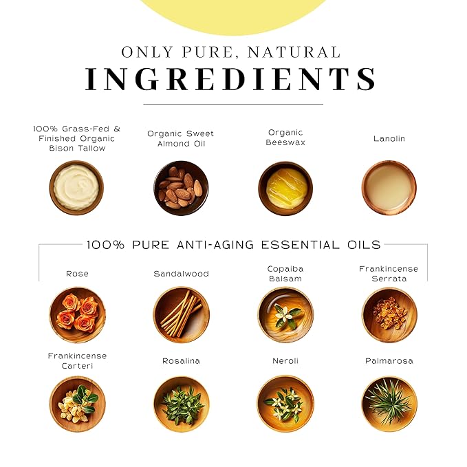 - ORGANIC INGREDIENTS, HIGH-GRADE QUALITY: Formulated with organic beeswax, grass-fed and finished bison tallow, sweet almond oil, and lanolin, blended with rose, sandalwood, and other essential oils to create a smooth texture and subtle, refined scent.