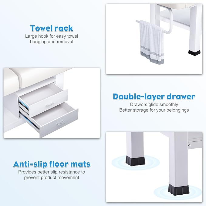 - 【Storage - Ready for Efficiency】Say goodbye to cluttered treatment areas. Our massage table comes with an abundance of storage space, thoughtfully designed to let therapists store essential tools, towels, and other supplies within arm's reach. This convenient storage solution keeps everything organized, allowing therapists to focus on providing top - notch treatments without any distractions.