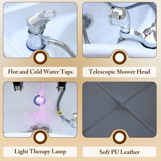 - LED Light Therapy for Scalp & Hair Health:Boost hair vitality with 4-color LED light therapy (blue, purple, green, cyan). Each light targets specific concerns: scalp detox, hair growth stimulation, stress relief, and oil regulation. A spa-grade add-on to elevate standard shampoo services into rejuvenating holistic treatments.