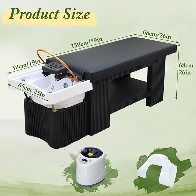 - Multi-functionality: Easily adjustable temperature and time settings make it accessible for both professionals and clients, ensuring a hassle-free and enjoyable operation. Redefine the salon experience by seamlessly transitioning the basin into a massage bed. The included pillow, complete with a face hole, transforms the basin into a versatile space