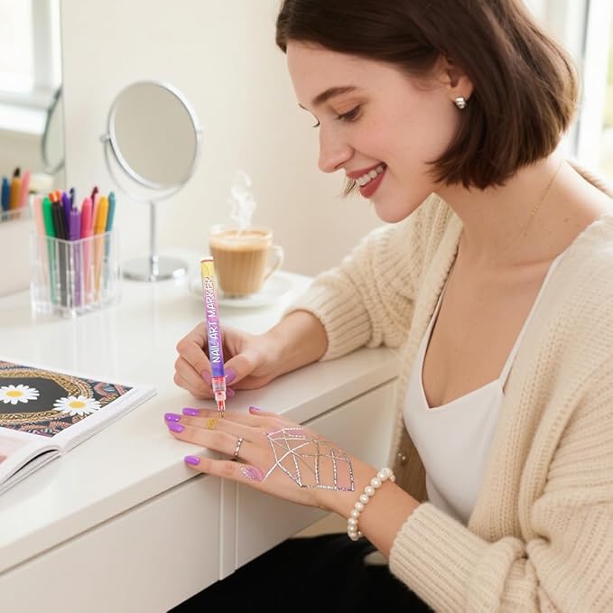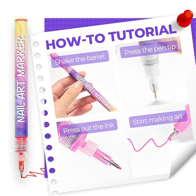 - Easy to Use: Each nail polish pen features a 0.5mm fine tip for smooth, accurate drawing—ideal for outlining, dotting, and creating detailed nail patterns with ease